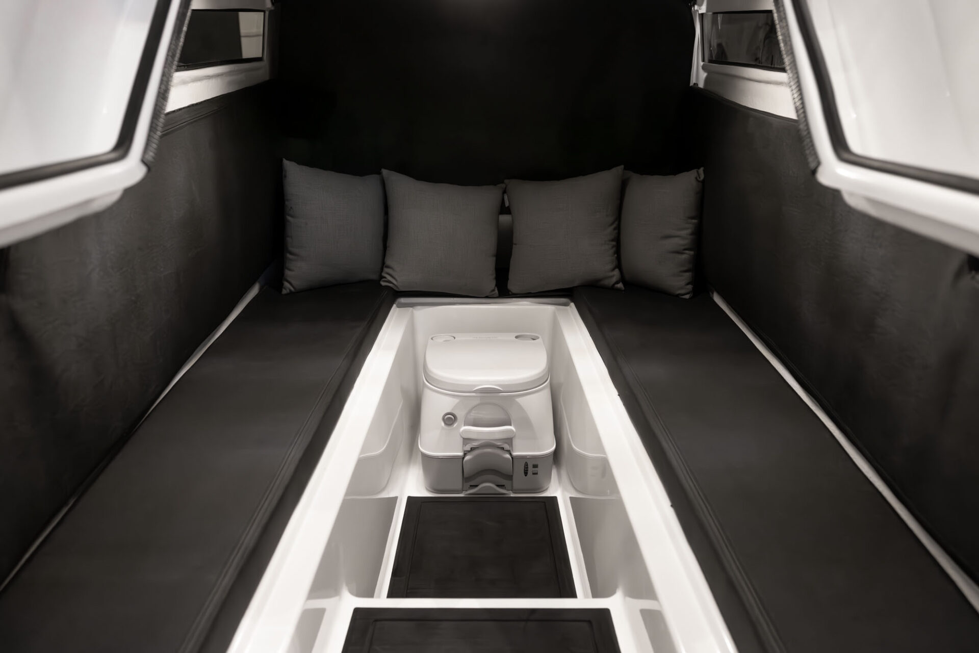 Det lengre skroget gir plass til en større styrekonsoll, som også gir mulighet for overnatting for de som er litt mer eventyrlystne. Det forlengede skroget gir også plass til et større sosialt område akter, perfekt for sammenkomster eller avslapning.